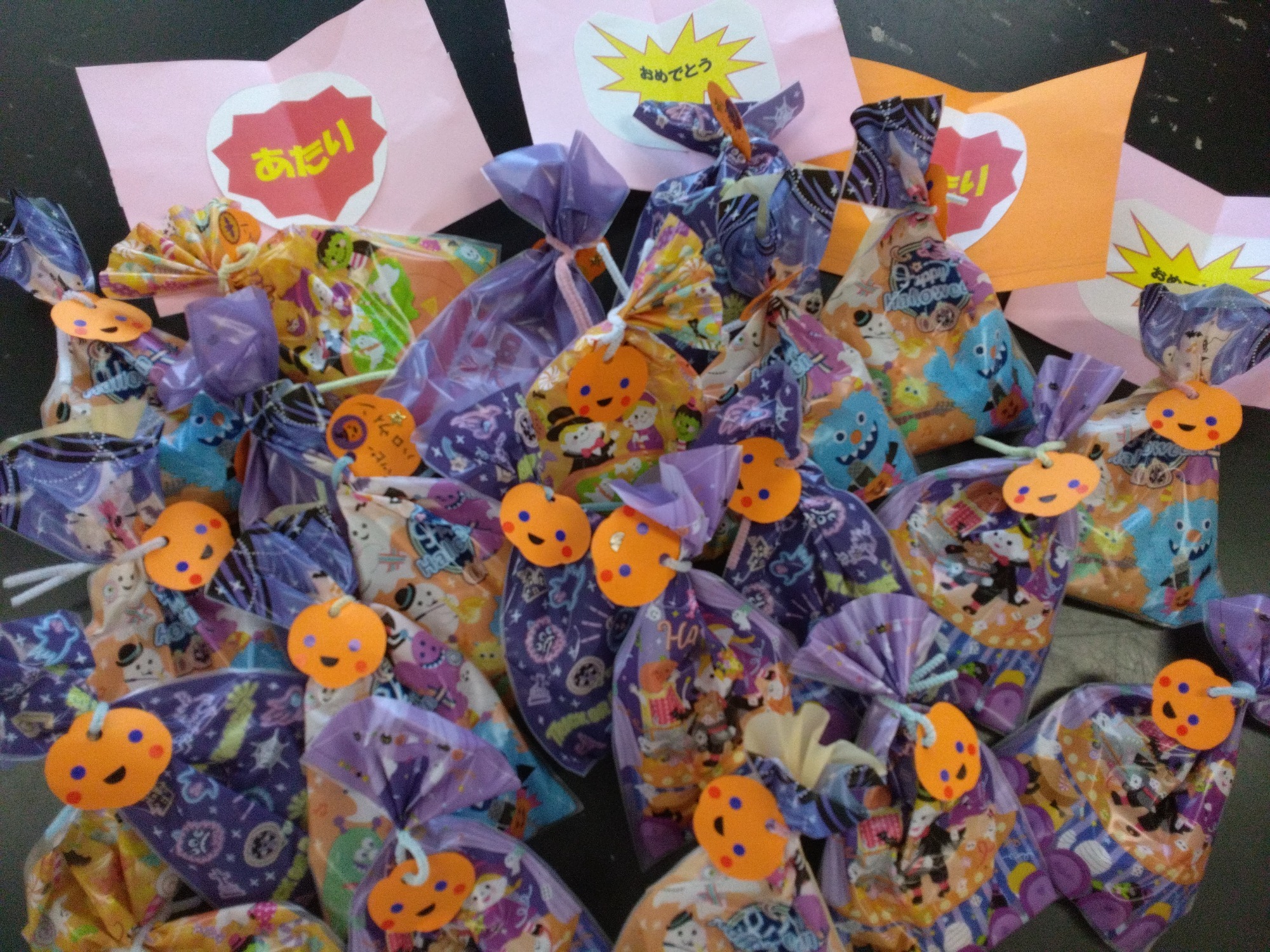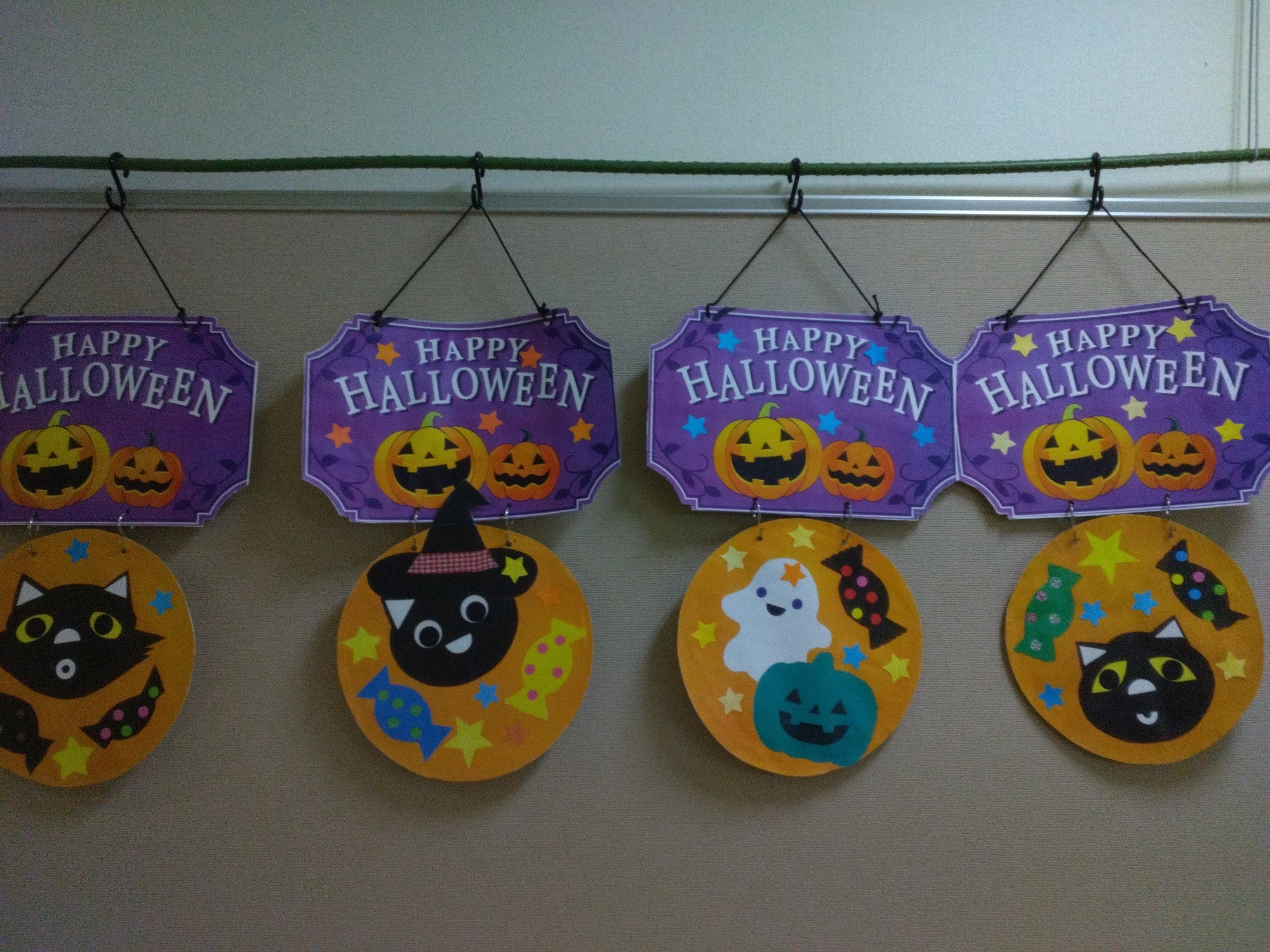 (いぼり)ハロウィンの飾りを作りました。猫やカボチャの顔、可愛いいね!