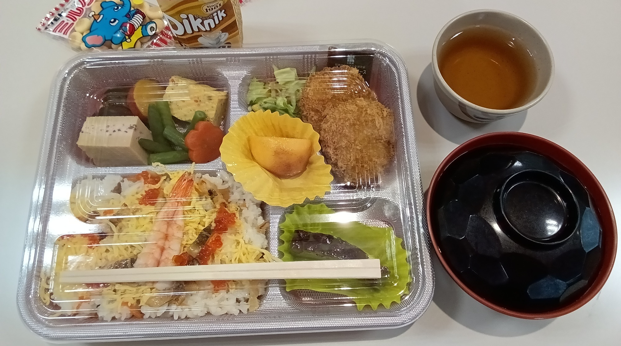 いぼりの「クリスマスプレゼント」です。お菓子の詰め合わせもありますね。「うまい棒、サッポロポテト」食べたいな!😹